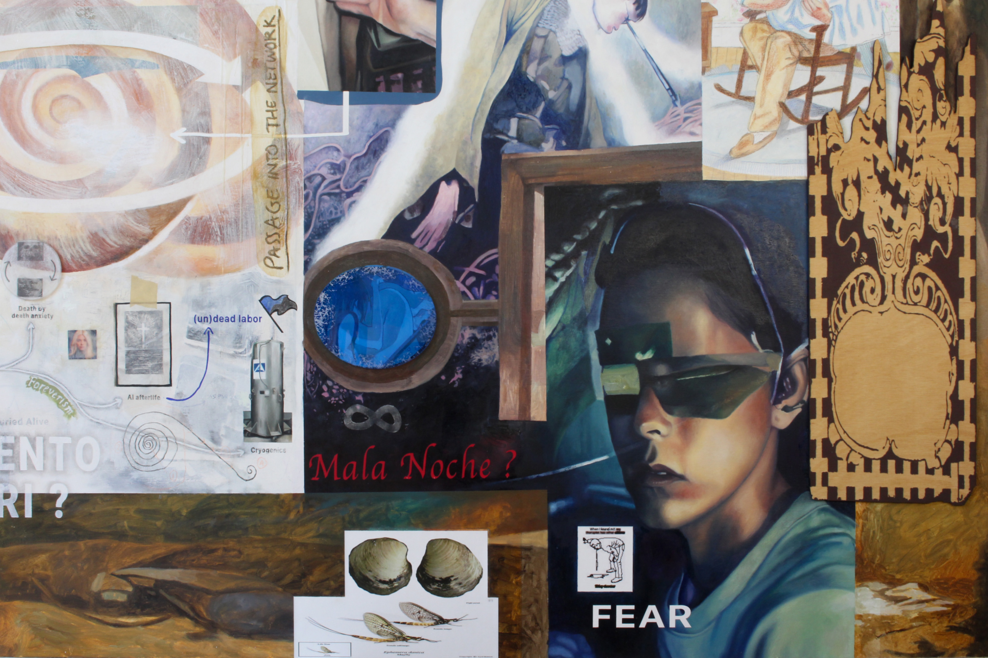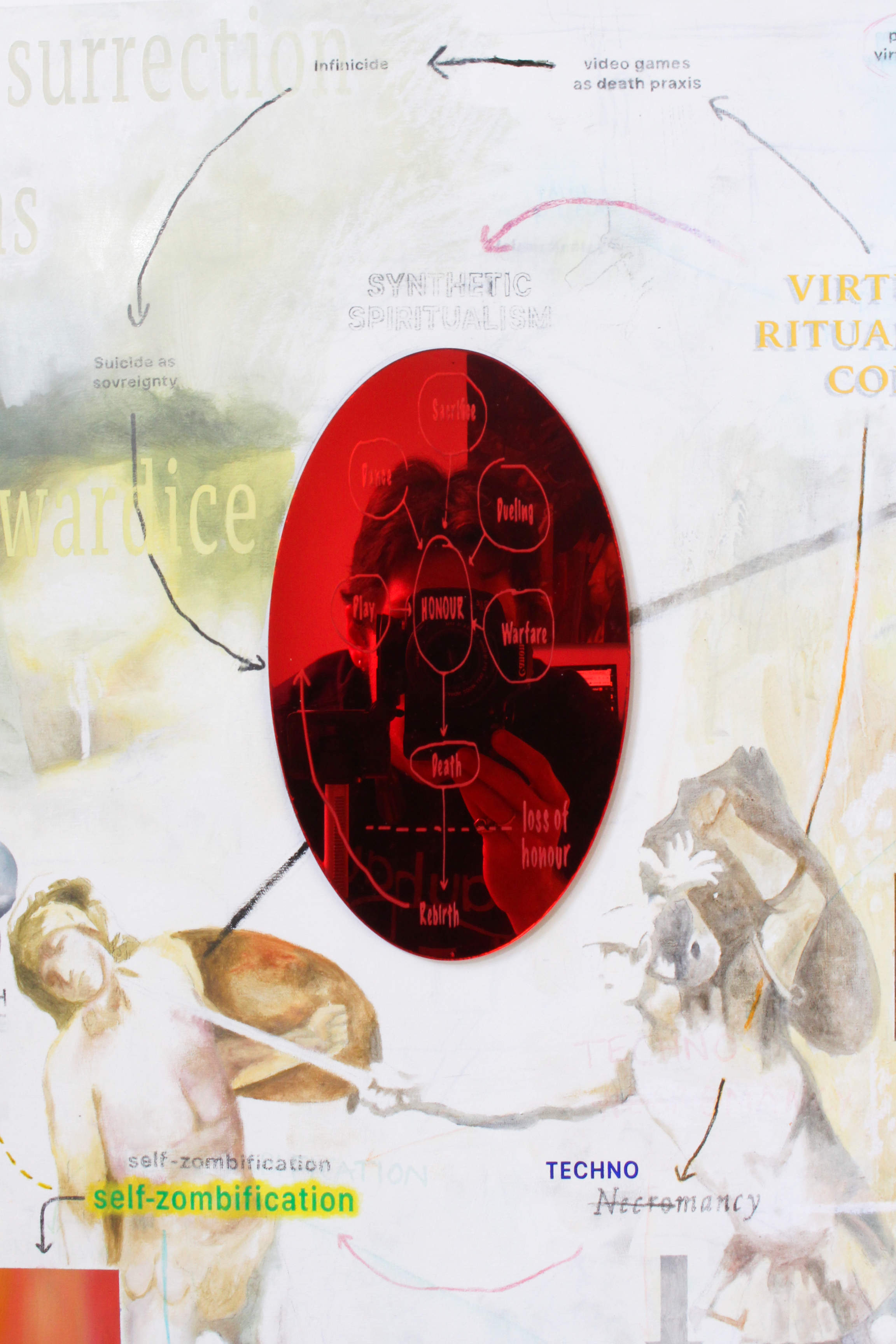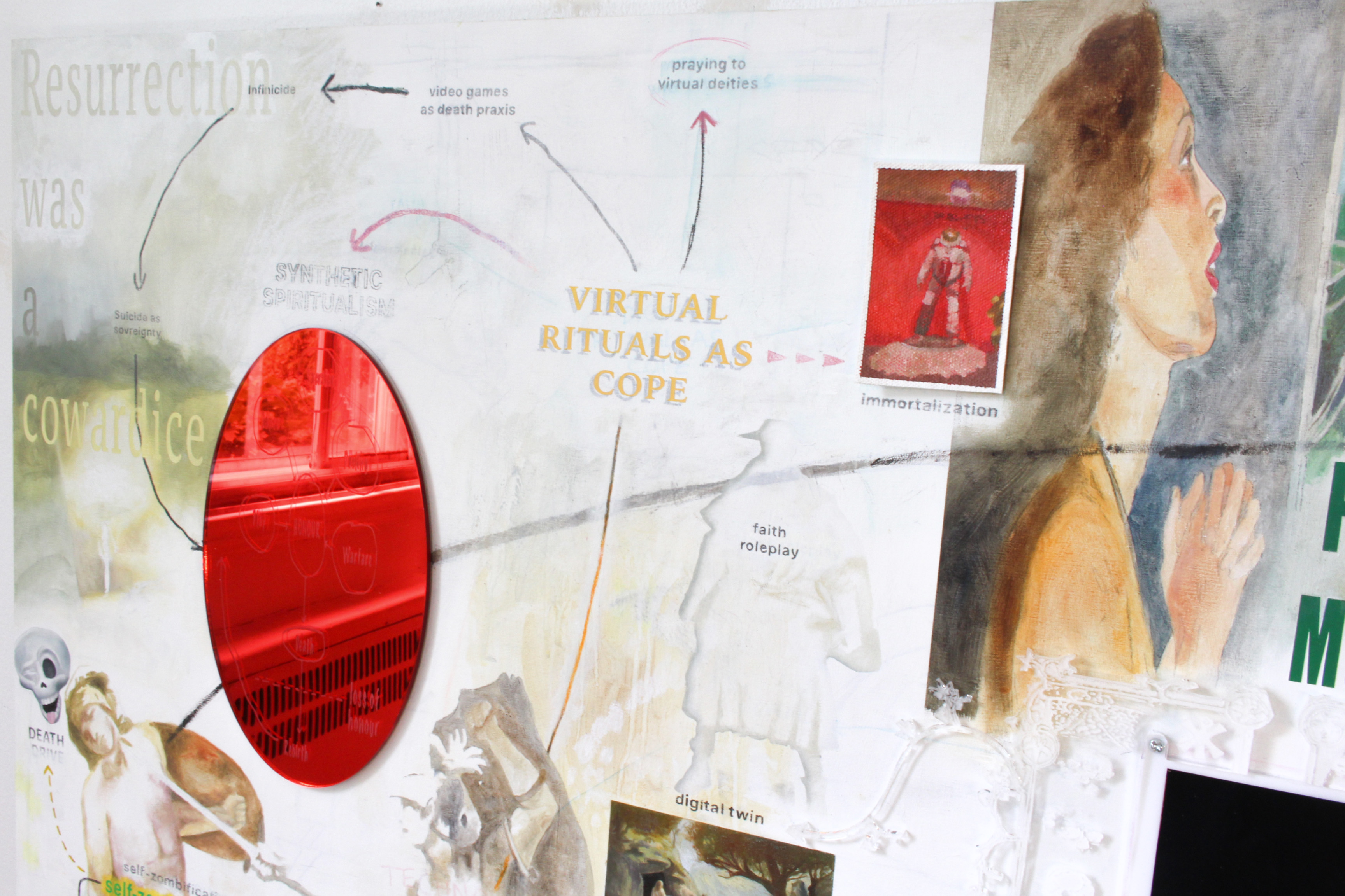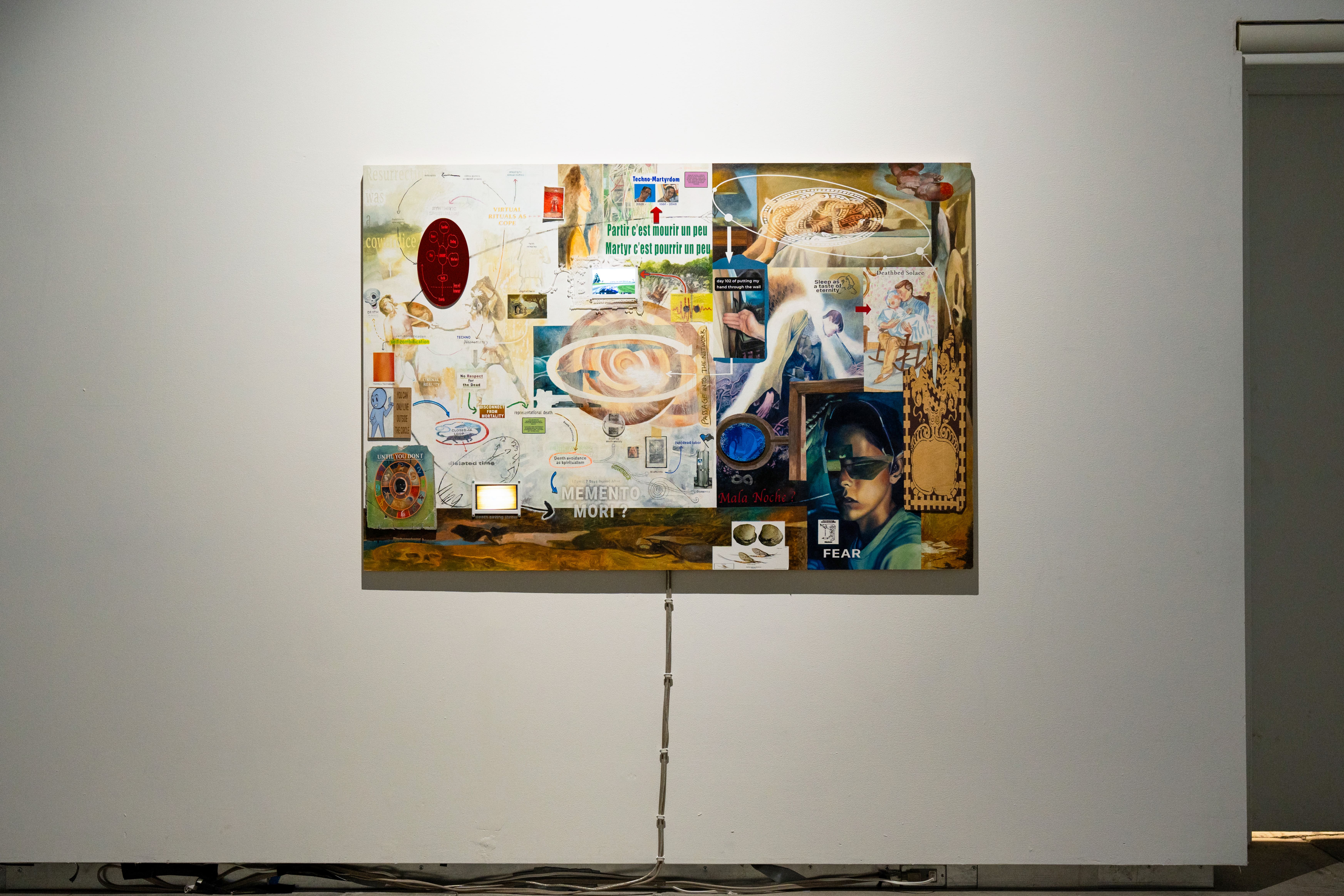 Grand Eternity | 2024 | 60x40 | oil paint, acrylic paint, charcoal, oil pastel, LCD screens, laser