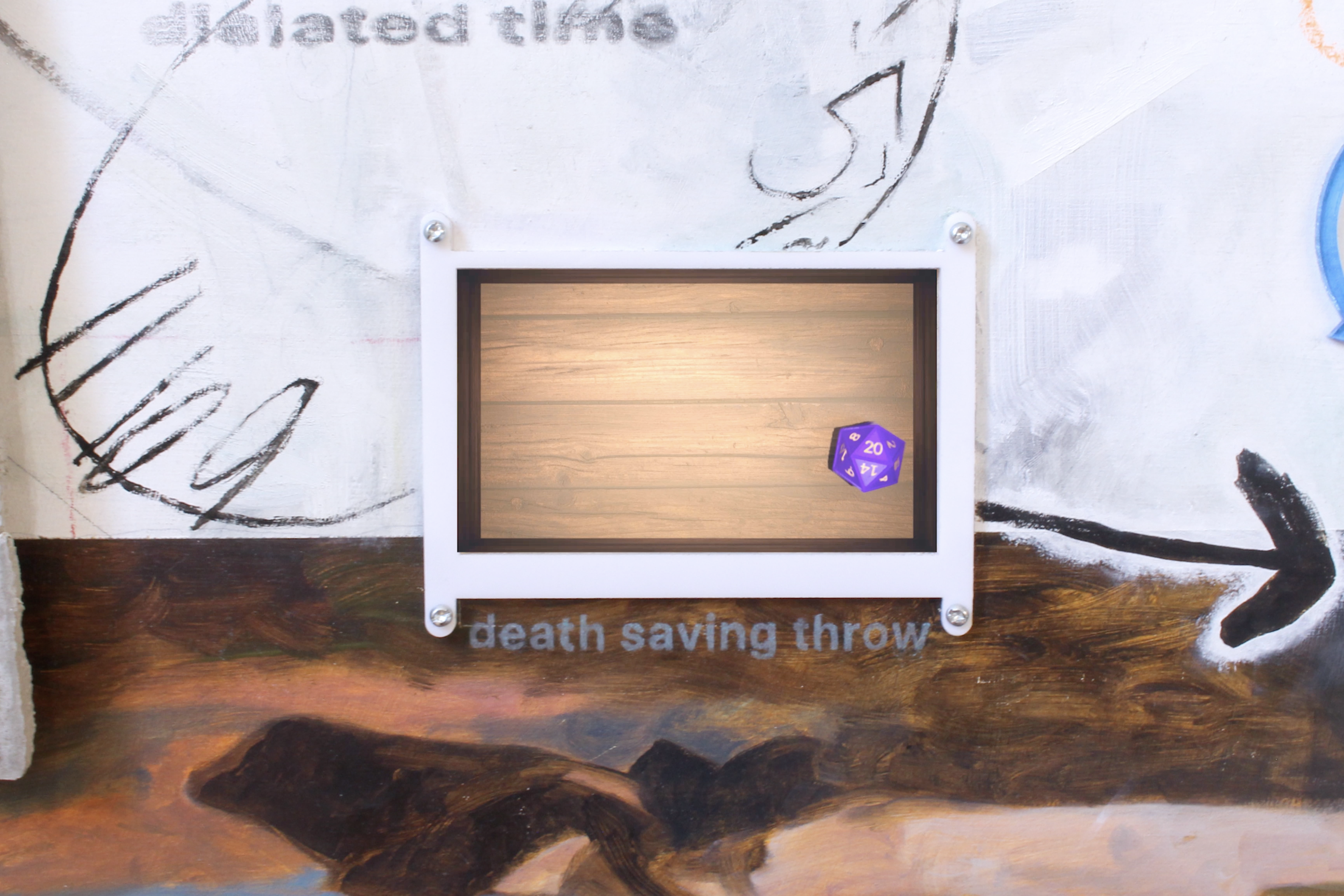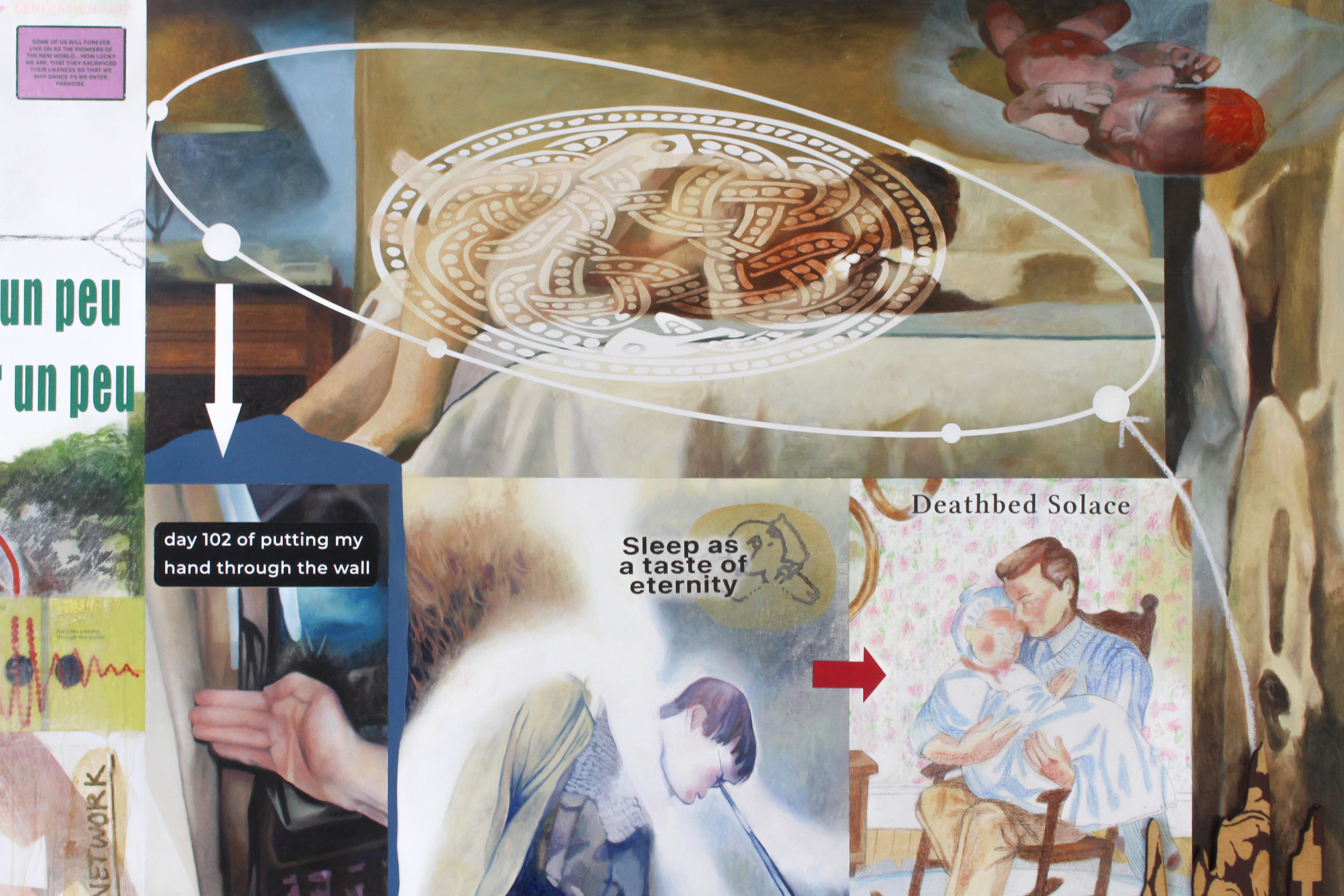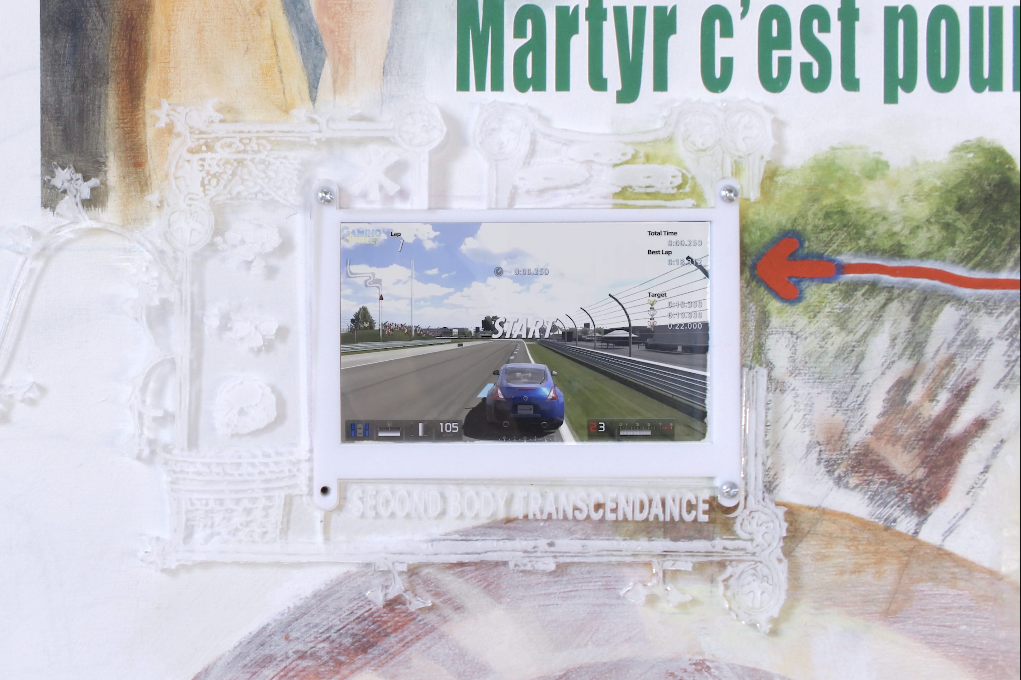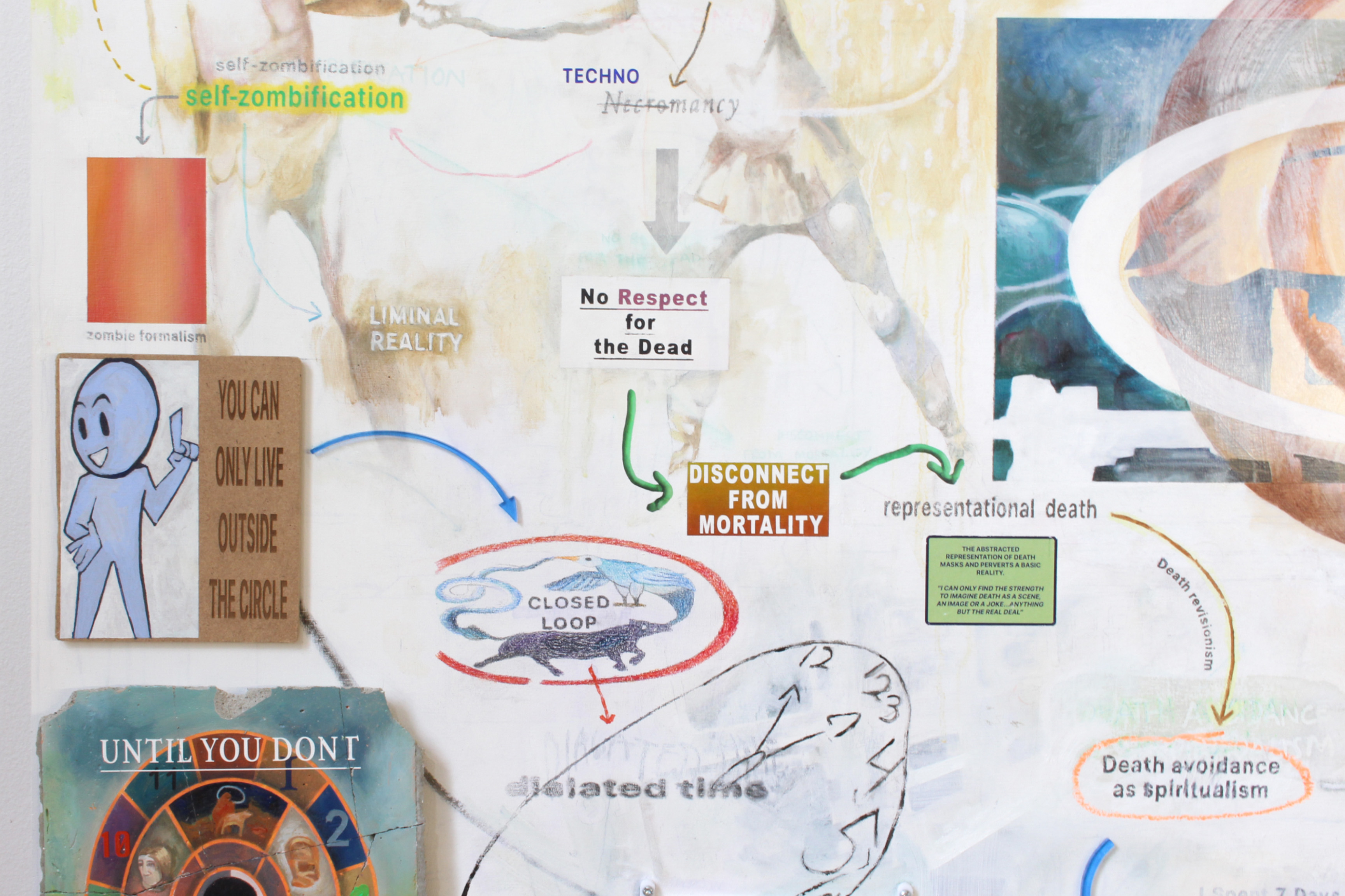 Grand Eternity | 2024 | 60x40 | oil paint, acrylic paint, charcoal, oil pastel, LCD screens, laser